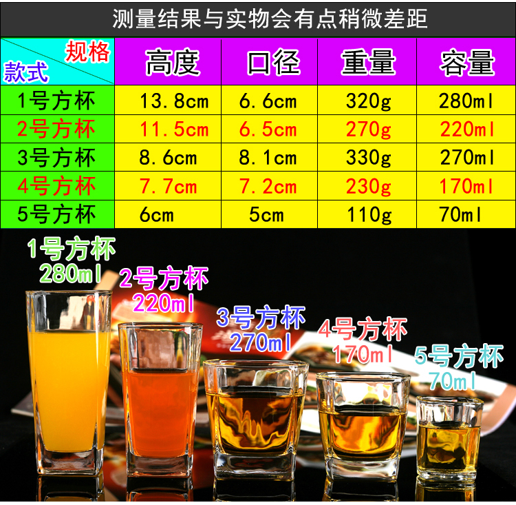 Thickened Square Glass Household Tea Cup Transparent Water Cup Drink Cup Whiskey Glass Beer Steins Bar KTV